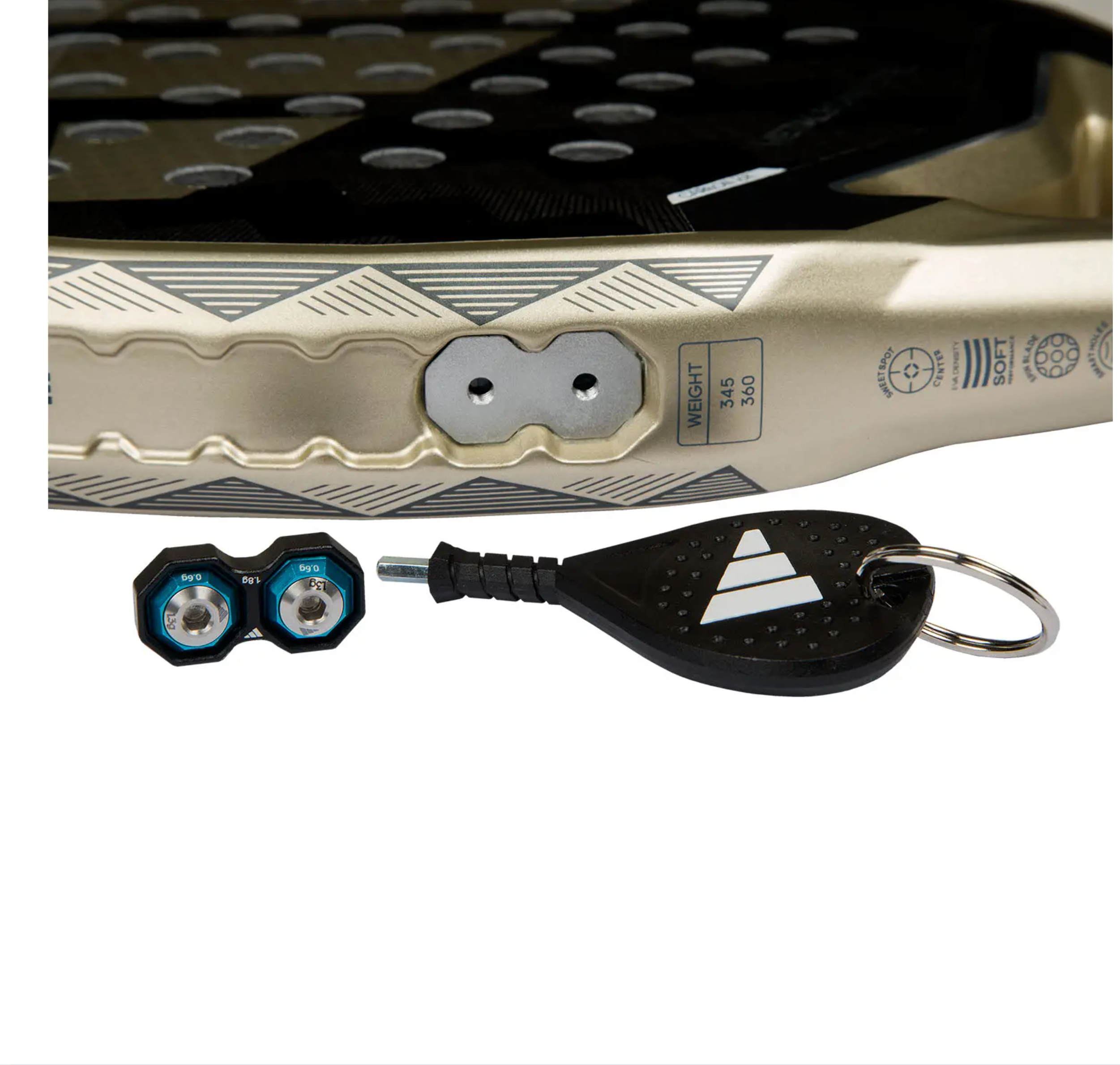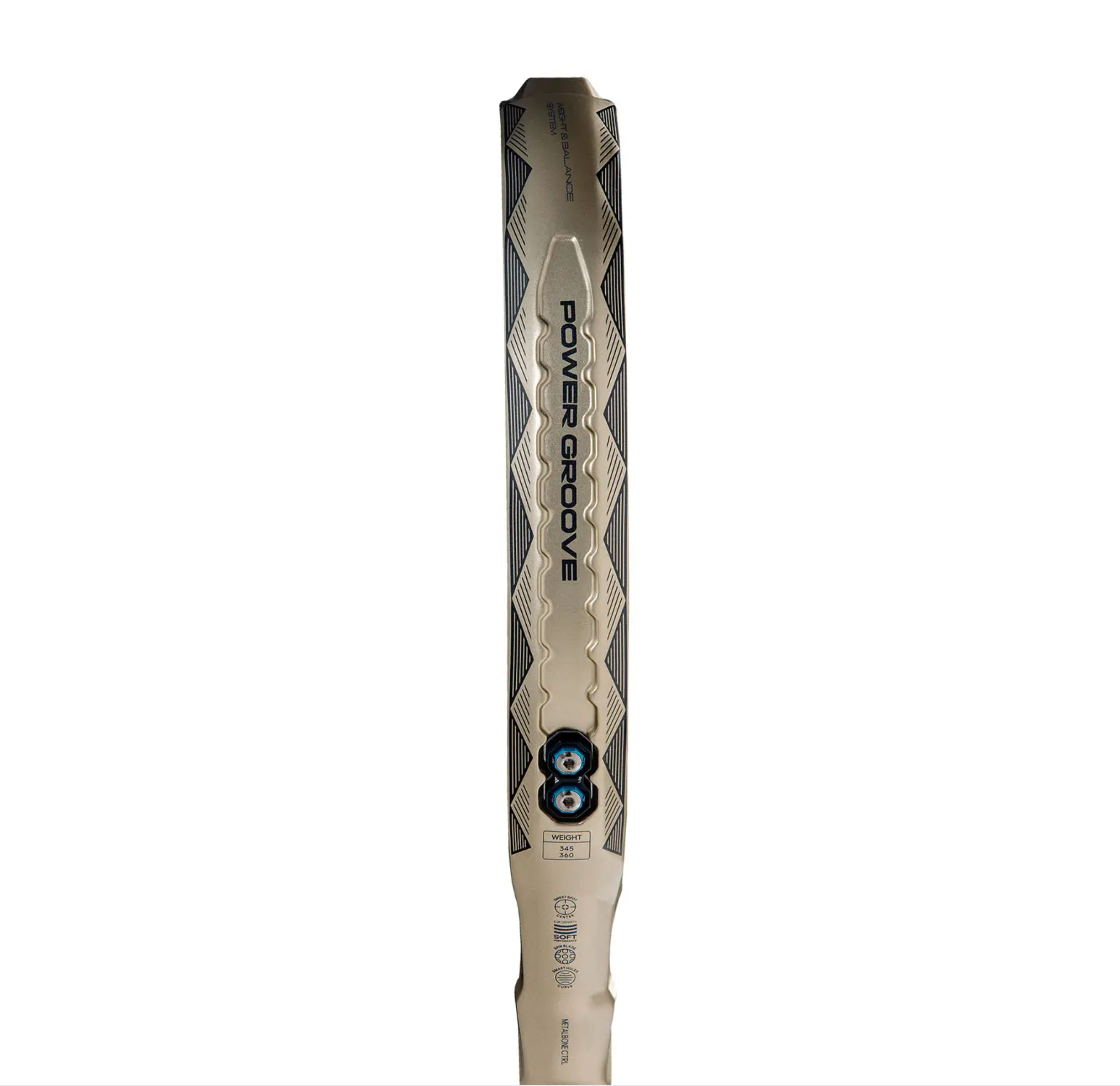 Elle a une forme ronde et un faible équilibre, ce qui en fait un modèle axé sur les jeux défensifs depuis la ligne de fond. Son poids est réglable de 345 à 360 grammes, avec la possibilité d’ajouter jusqu’à 11,2 grammes supplémentaires.