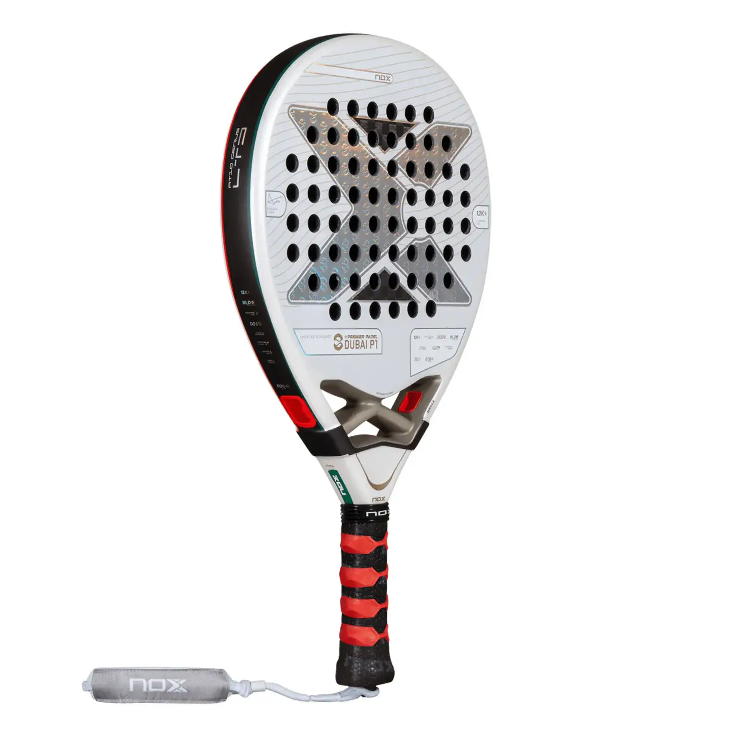 La Nox AT10 Genius Dubai Limited Edition est une raquette de padel en forme de goutte d’eau , elle offre donc un équilibre idéal entre puissance et contrôle, idéale pour les joueurs qui recherchent la précision sans sacrifier la puissance. Son poids est compris entre 360 et 375g et son frame 100% carbon garantit maniabilité, durabilité et fermeté. Raquette de padel exclusive Dubai Premier Padel 2024.