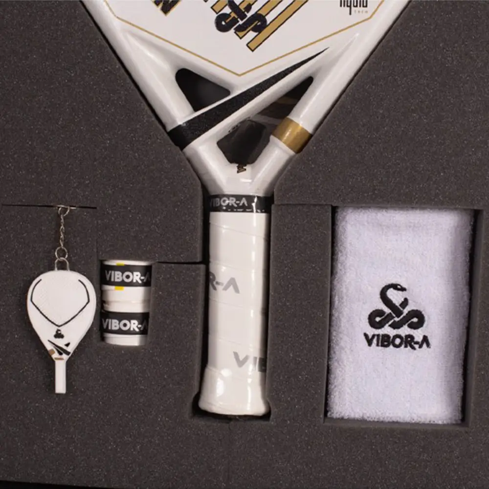 La Vibor-A Titan Limited Edition 2025 est une raquette de padel conçue pour se démarquer sur tous les plans, de ses performances à son design avant-gardiste. Ce modèle hybride, avec un équilibre moyen et un poids compris entre 360 et 370 grammes, assure un jeu polyvalent sur le terrain, s’adaptant parfaitement aux situations offensives et défensives. La raquette de padel fait partie d’un pack exclusif qui comprend un bracelet, un surgrip et un porte-clés, idéal pour compléter votre équipement avec style.